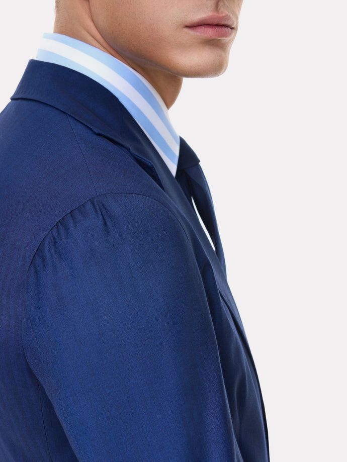 Spalla Camicia is a technique that offers more mobility and flexibility in the shoulder area, creating a natural, graceful shoulder line, ideal for a relaxed and unstructured look, specific to casual occasions.