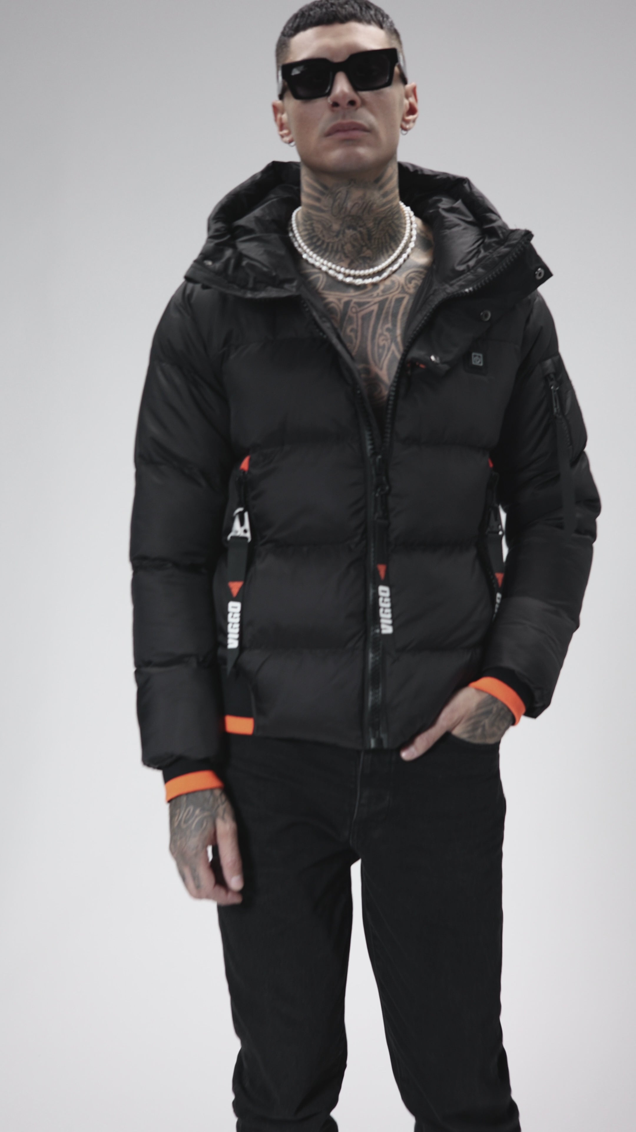 Black jacket with heating and removable accessories