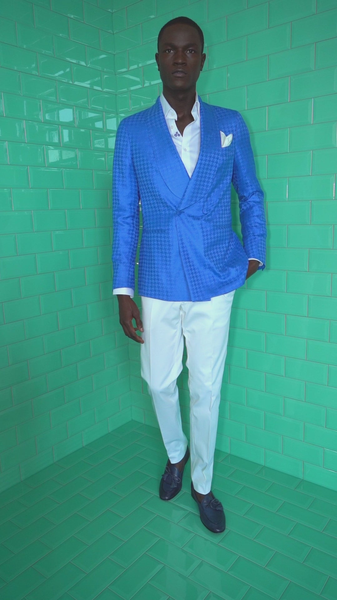 - Tuxedo jacket in cashmere, natural silk and linen, houndstooth pattern
