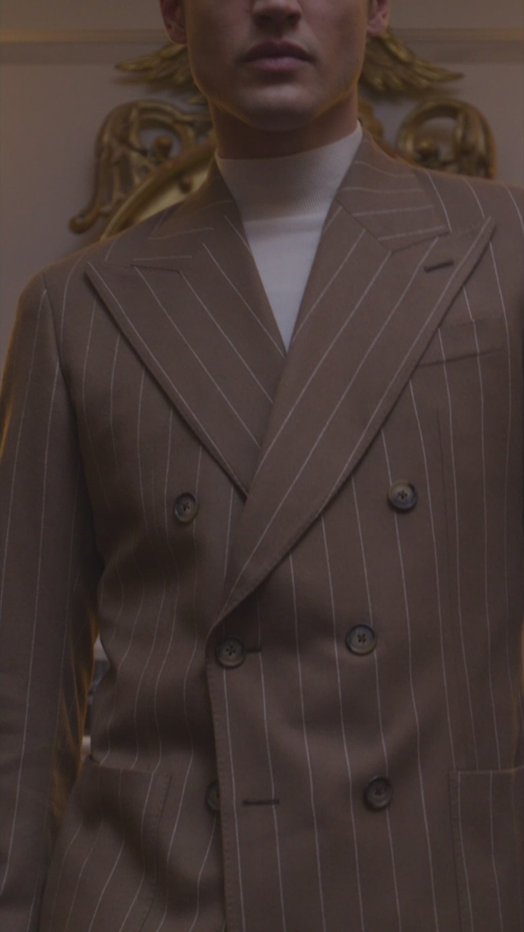 Maleta din lana merino extra fina 16 GG, texturata, beige