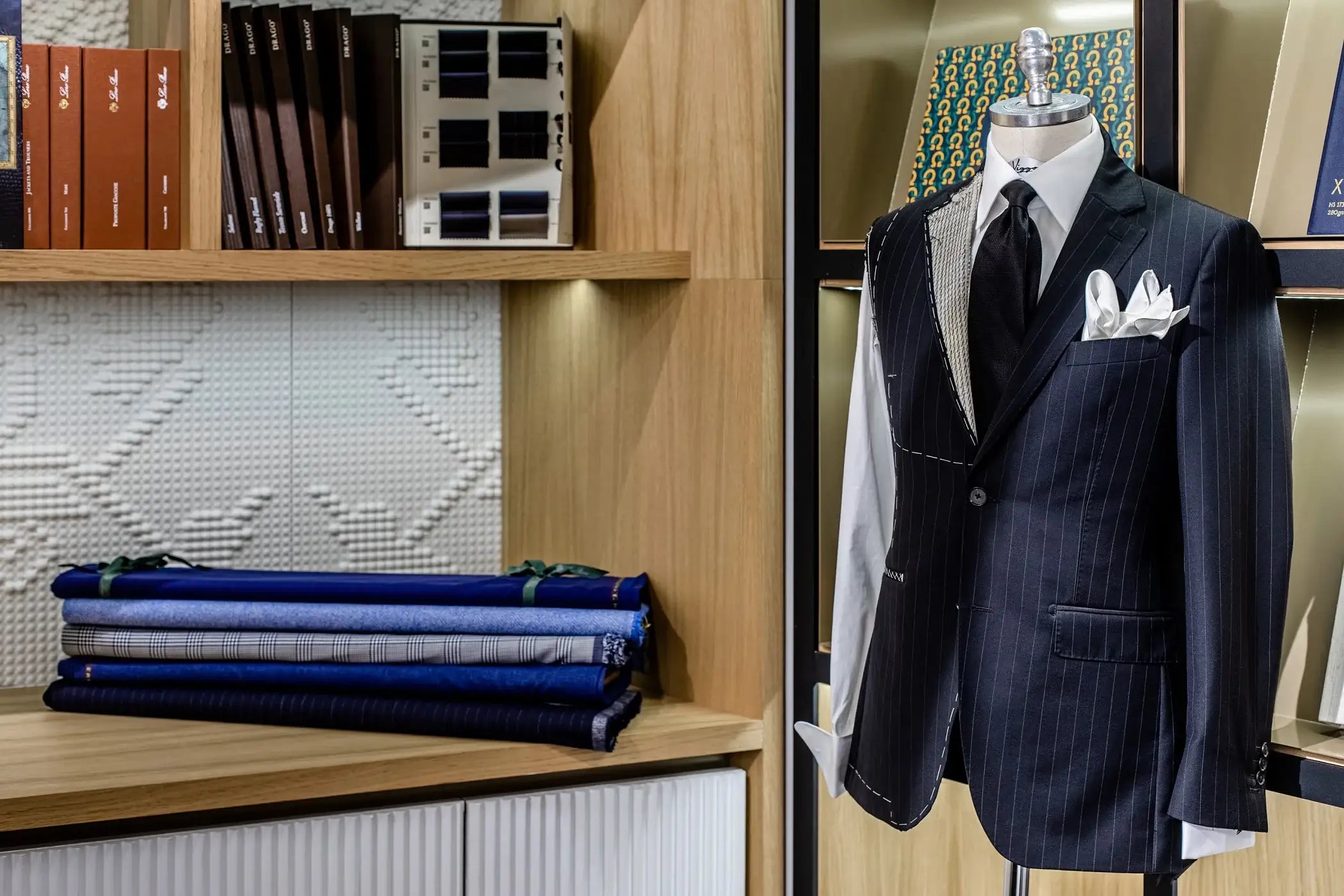 Totul este posibil prin accesul la o varietate extinsa de tesaturi premium ale producatorilor consacrati din Italia si Anglia: Loro Piana, Ermenegildo Zegna, Scabal, Lanificio Tallia di Delfino, Vitale Barberis Canonico.