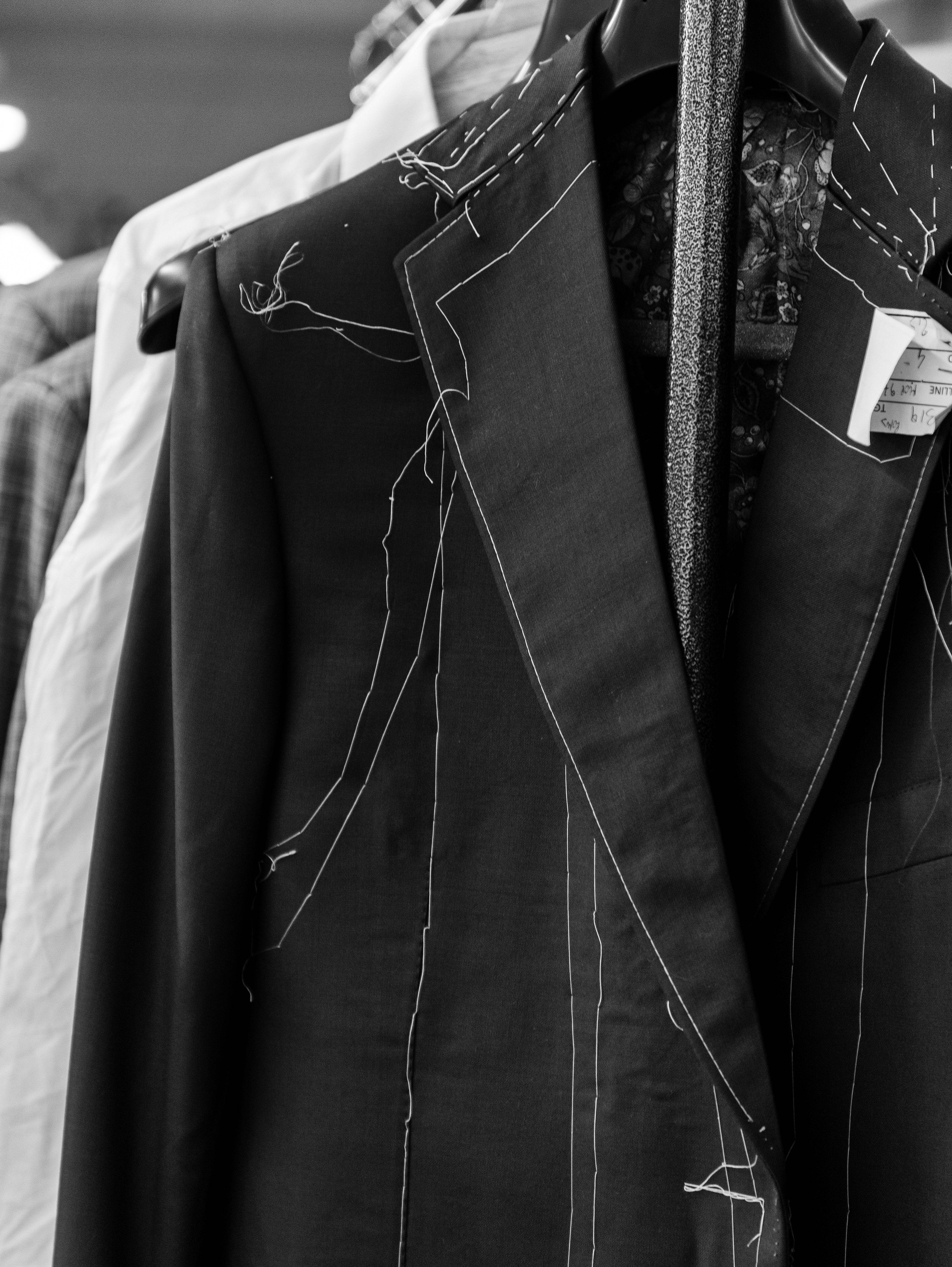 Incepand cu tipul de constructie, fie aceasta half-canvas sau full-canvas, totul se personalizeaza: tipul reverului (decupat, spit sau sal), numarul si modelul de nasturi (un nasture, doi nasturi sau la doua randuri de nasturi), tipul si pozitionarea buzunarelor, captuseala, butonierele, chiar si ata folosita in coaserea nasturilor sau a captuselii. Alegerea textului si a stilului monogramei din interiorul sacoului este nota personala finala adusa unei piese vestimentare unice, desavarsite, special creata pentru evenimente memorabile.