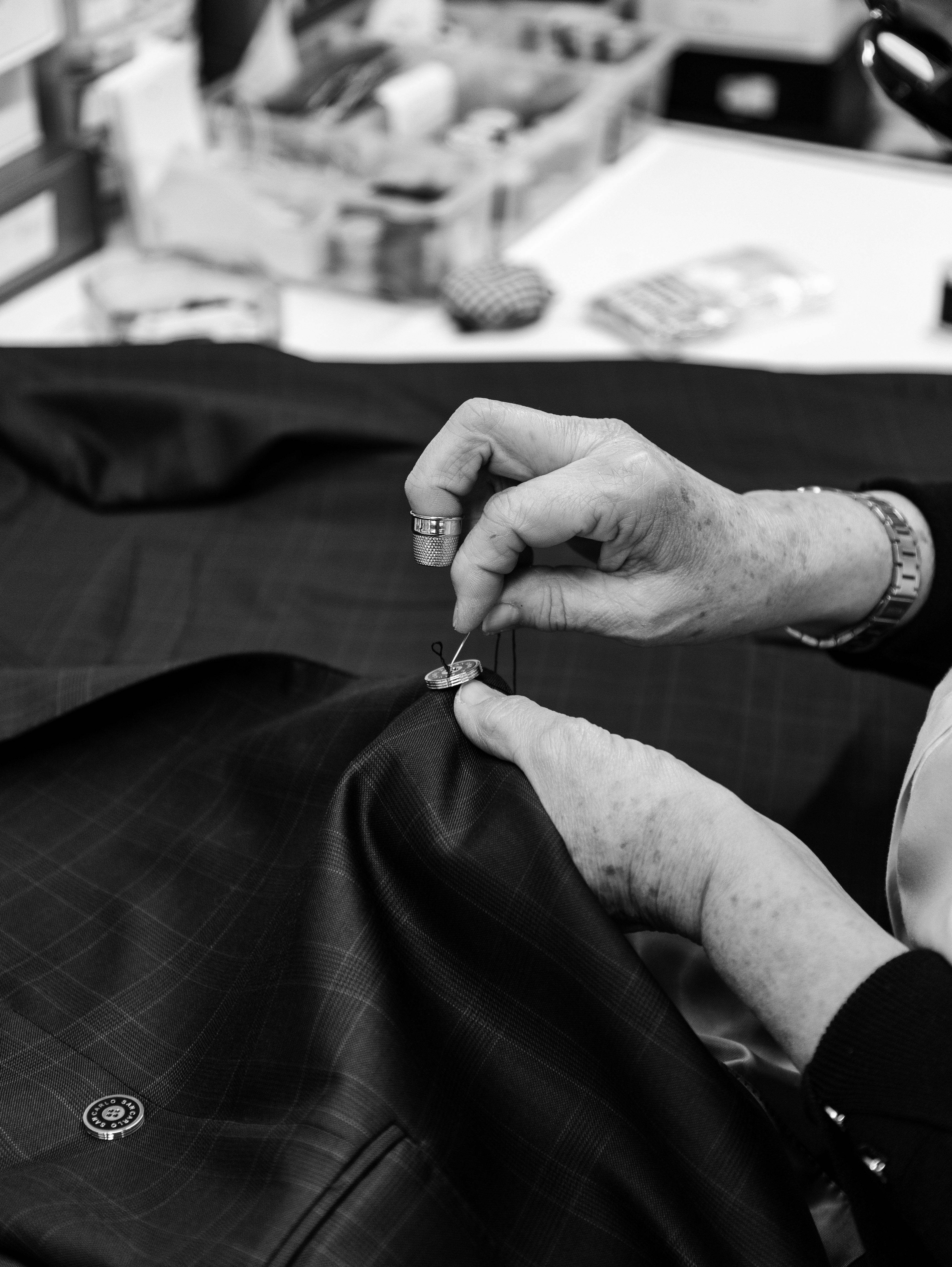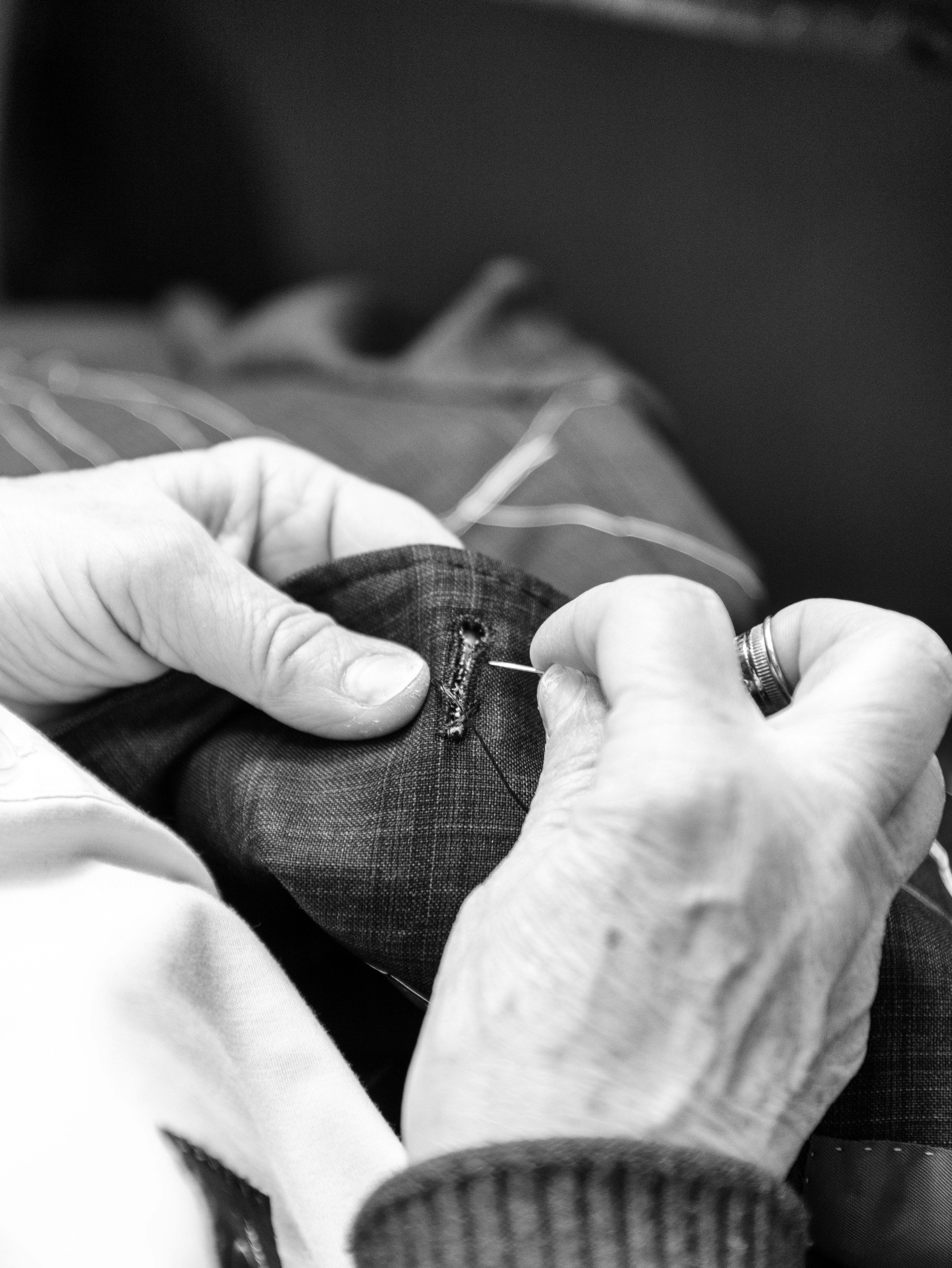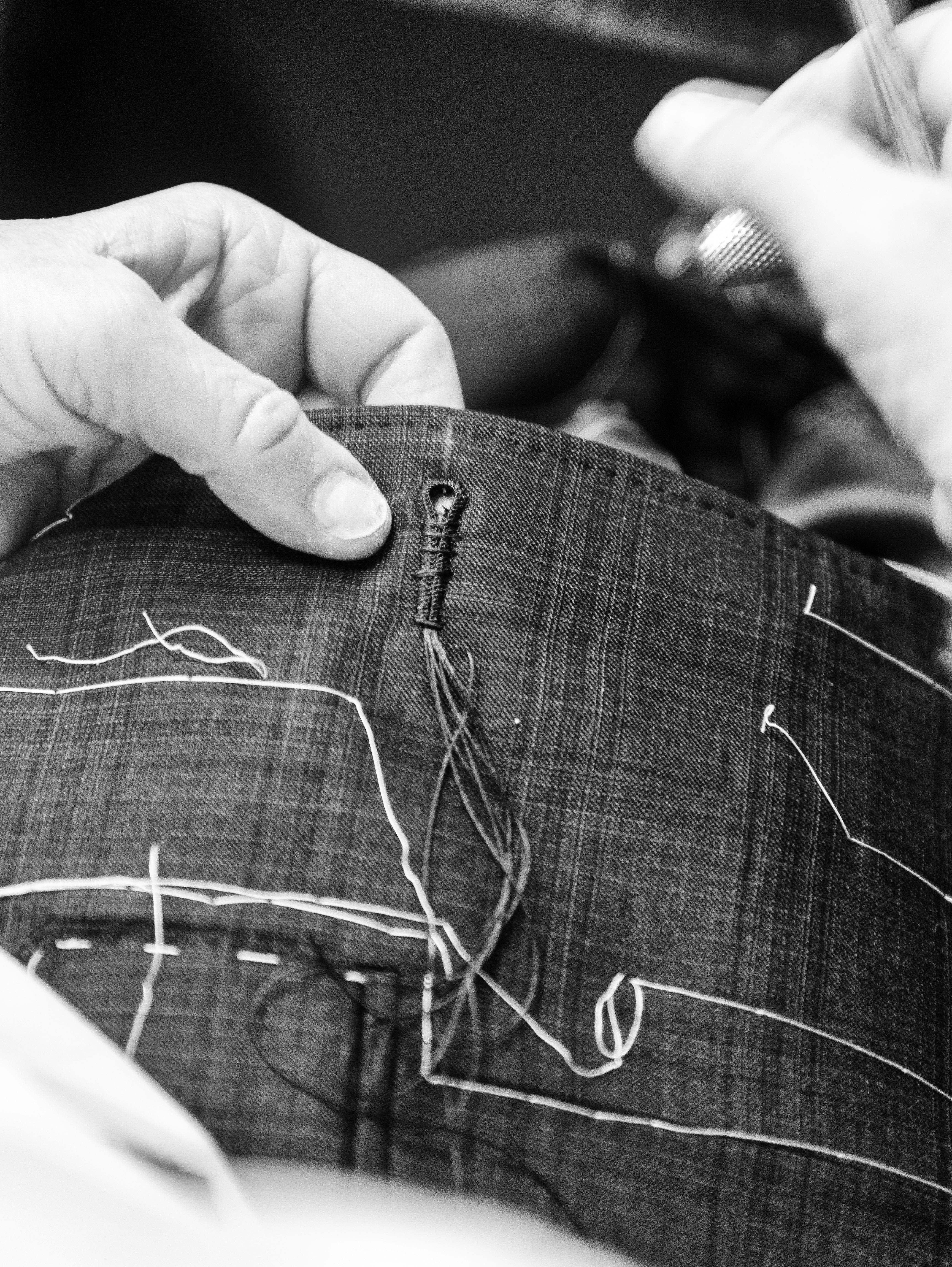 Cea mai mare parte a cusaturilor in cazul unui costum made to measure sunt realizate cu masini de cusut. Acest lucru permite o viteza mare si o consecventa foarte buna in executie. Detaliile fine si finisajele sunt realizate manual de catre croitori experimentati de la Viggo Tailoring. Dintre acestea pot face parte cusaturile pentru revere, butoniere, mansete, guler, captuseala umerilor, rascroiala manecii, fixarea nasturilor si a captuselii.