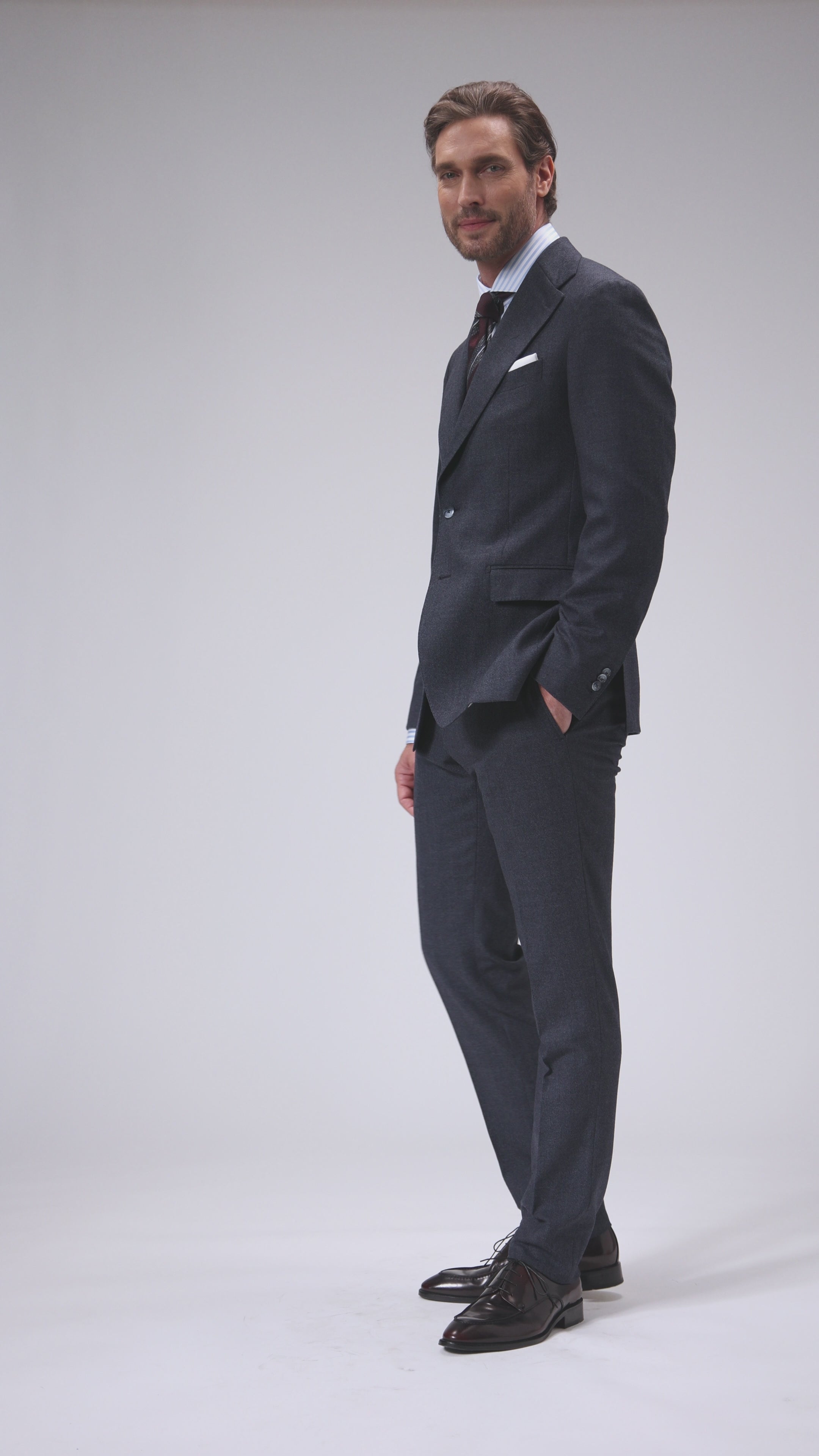 Costum tesatura Loro Piana bleumarin, flanel texturat