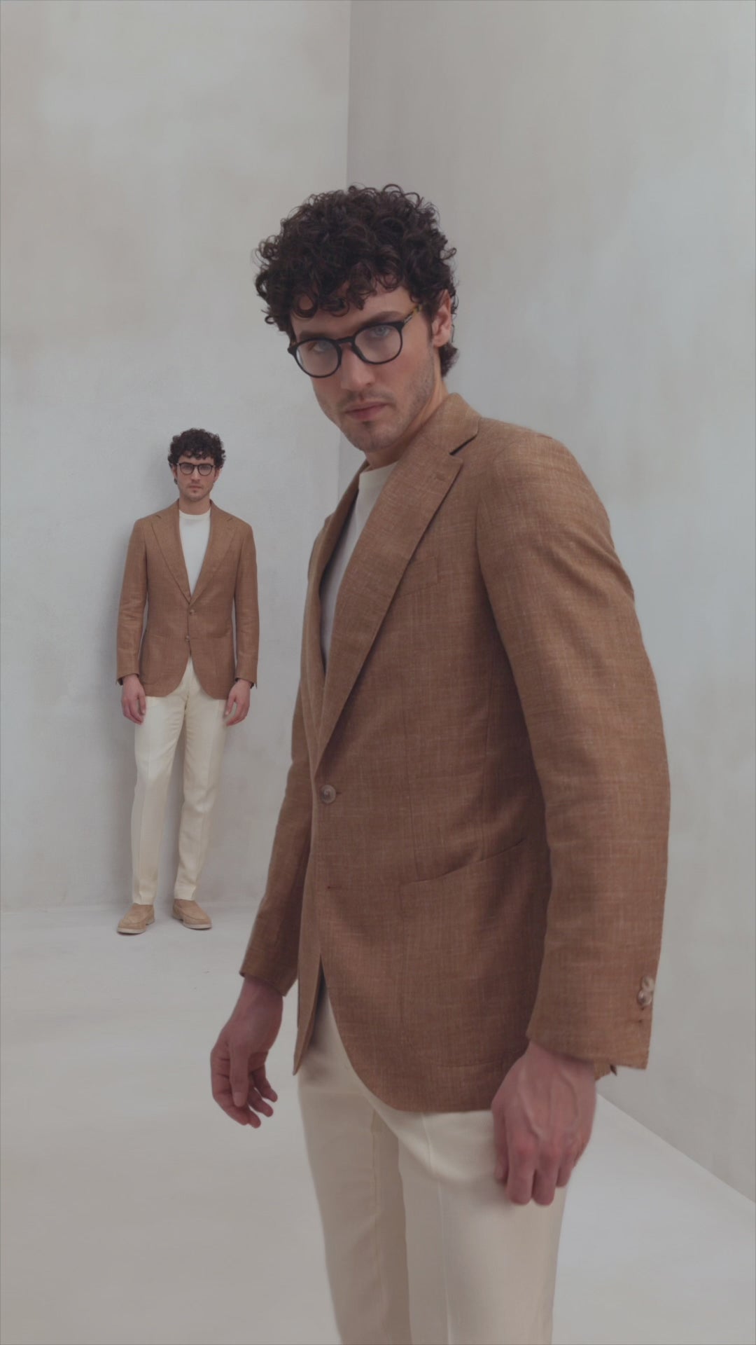 Melanjul pretios de lana virgina, matase si in din tesatura Fratelli Tallia di Delfino in tonuri pamantii sta la baza unei piese vestimentare cheie din garderoba masculina a verii. Modelul semi-captusit din tesatura naturala lasa pielea sa respire, iar constructia Half Canvas contribuie la aspectul premium.